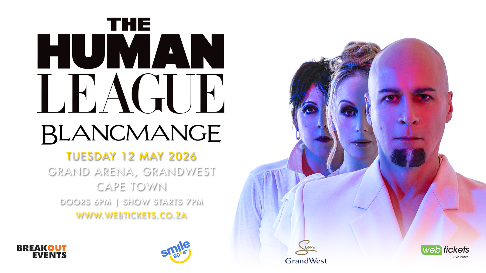 BreakOut Events in association with SmileFM is proud to present legendary British synth-pop pioneers The Human League, with special guests electronic icons Blancmange, live for one night in Cape Town.
